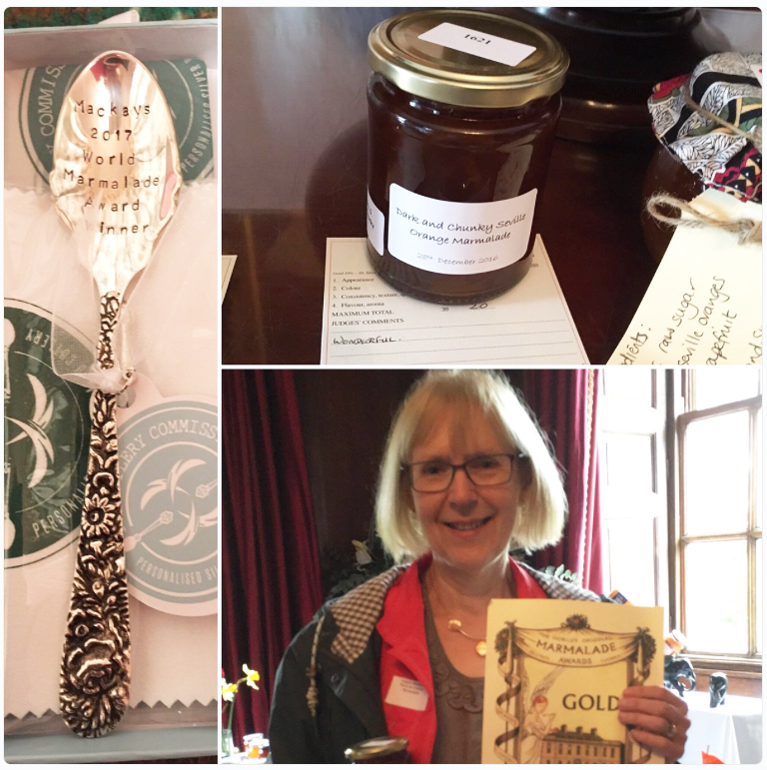 Quite often I make connections with preservers via social media that lead to me teaching them at one of my workshops. In 2013, Susan Mackenzie a first time entrant was given full marks and Gold in the Novice category for her Seville orange Marmalade. The judges described the entry as “wonderful”. My social media friend @Messy_Baker has a standard of marmalade making similar to her bread. In 2014, I took my preserving pan to her home in London and within a day she caught the marmalade bug. In 2016 her Seville and Bourbon Marmalade won Gold and a savoury Cumberland Seville won Gold in 2017.